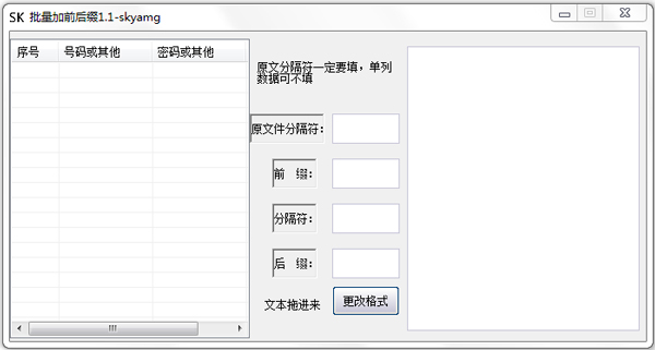 批量加前后缀是一款非常实用的文本前后缀添加软件。该软件能够更改各种软件需要的账号格式,你可以把需要的内容轻松导入到其中!