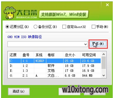 登录大白菜装机版pe系统桌面,系统会自动跳出大白菜PE装机工具窗口,打开“浏览(B)”进入下一步操作。
