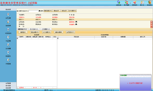 易软健身房管理系统 V7.2 绿色版
