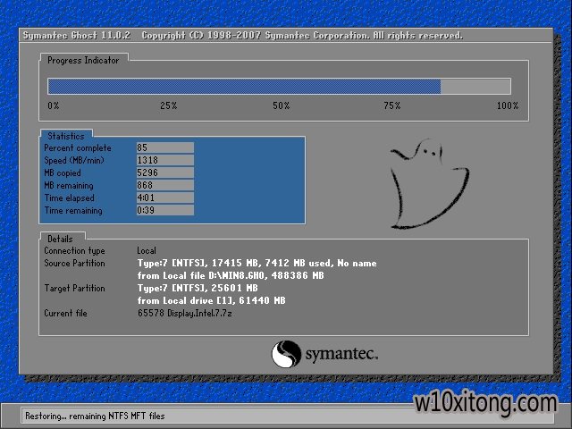 把光盘下GHOST目录下的Win10.GHO文件复制到硬盘,然后重启设置光盘启动,再选择手动运行GHOST11,选择之前复制出来的GHO进行恢复!