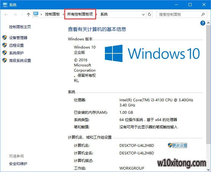 1、按下Windows+pause 组合键 打开老友纯净版系统,点击地址栏中的【所有控制面板项】选项;